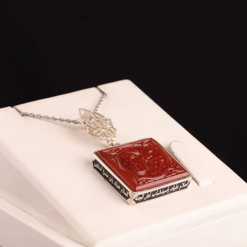 نگین عقیق طبیعی اصل سرخ با نقش عزیزم حسین (ع) می باشد.