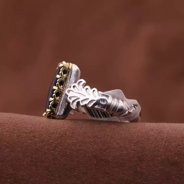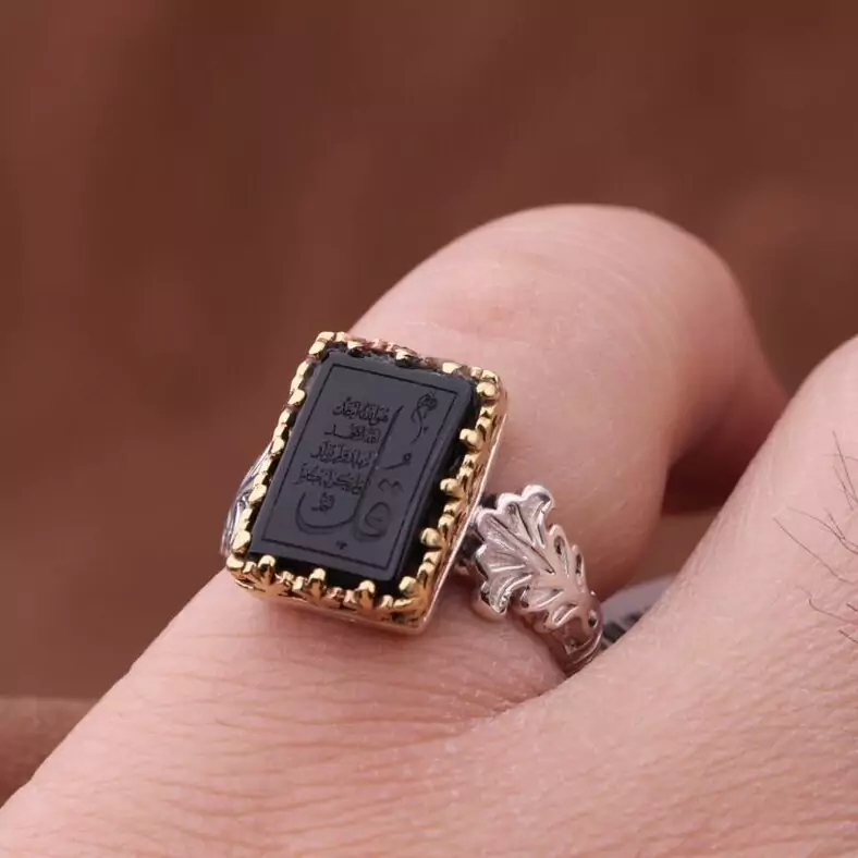انگشتر عقیق نقش چهارقل رکاب تاج برنجی مردانه اصل ( انگشتر مردانه )