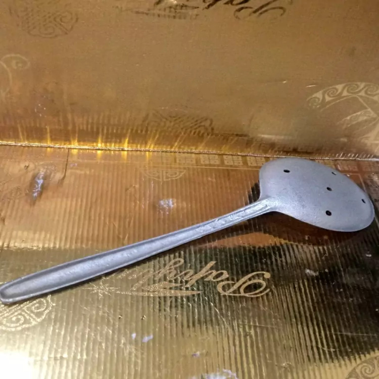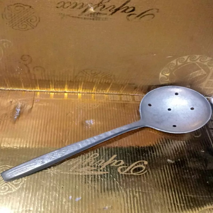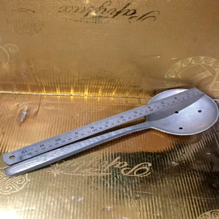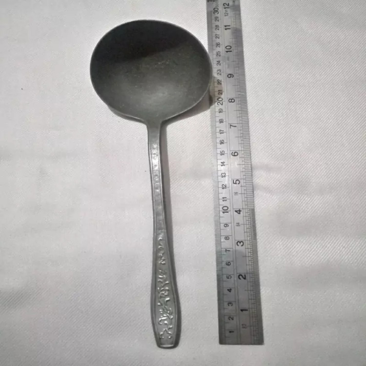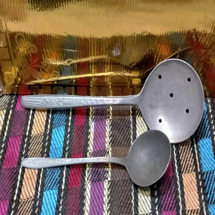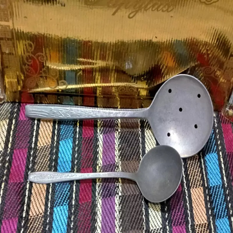 کفگیر و ملاقه نسبتا قدیمی نو و باکیفیت آلومینیومی یا به اصطلاح روحی قد و طرح طبق اندازه مشخص شده در تصاویر