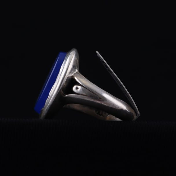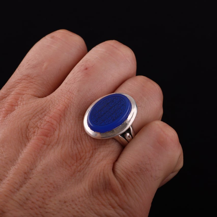 انگشتر مردانه عقیق آبی نقش آیت الکرسی اصل ( انگشتر نقره مردانه )