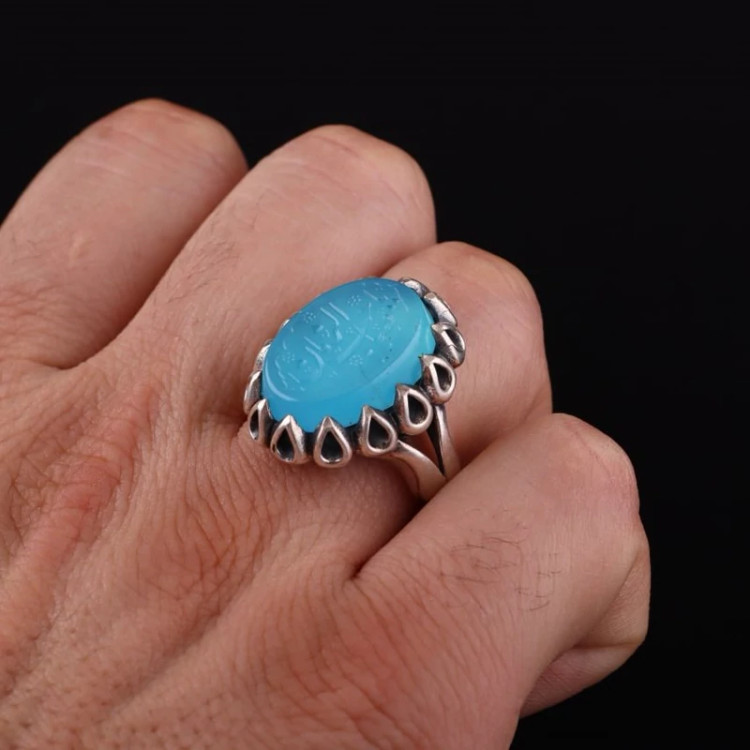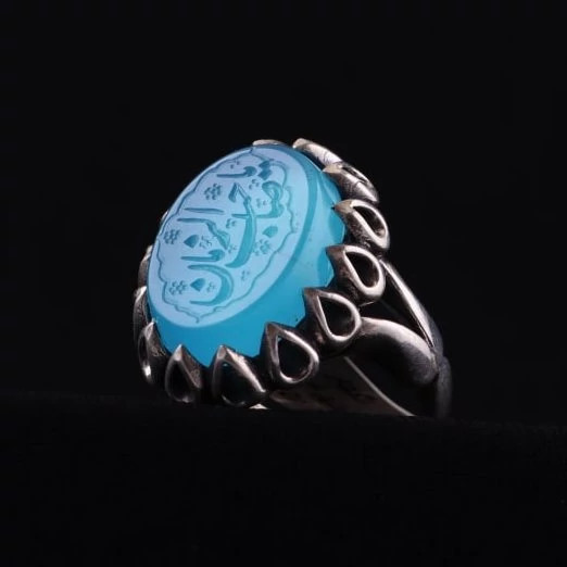 انگشتر مردانه عقیق آبی نقش یاصاحب الزمان اصل ( انگشتر نقره مردانه )