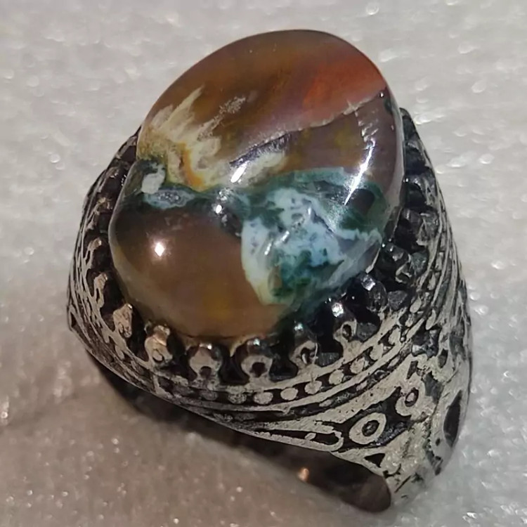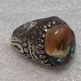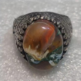 انگشتر مهردار حجرالسلطان کهنه بصره ای آتشین فعال اصیل سوار بر رکاب مهر دار نقره عیار متوسط آلیاژ 740 درصد....اندازه داخل رکاب حدود 22 میل و وزن انگشتر 12 گرم است