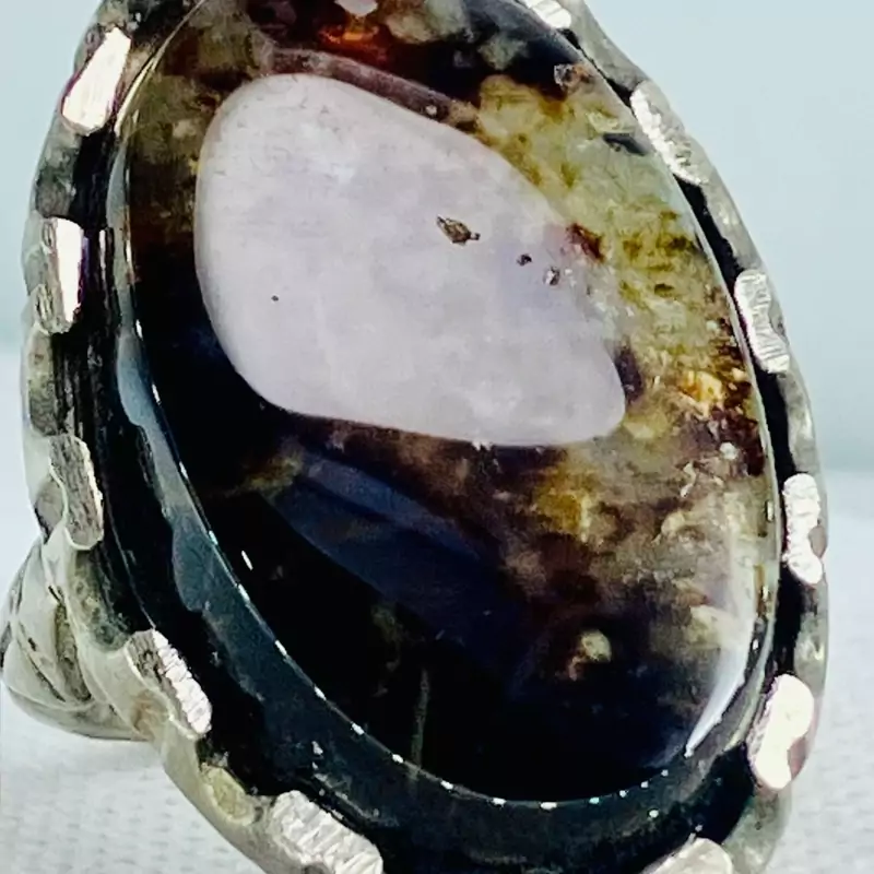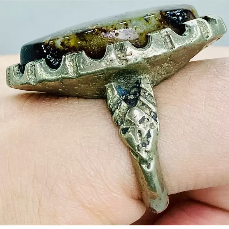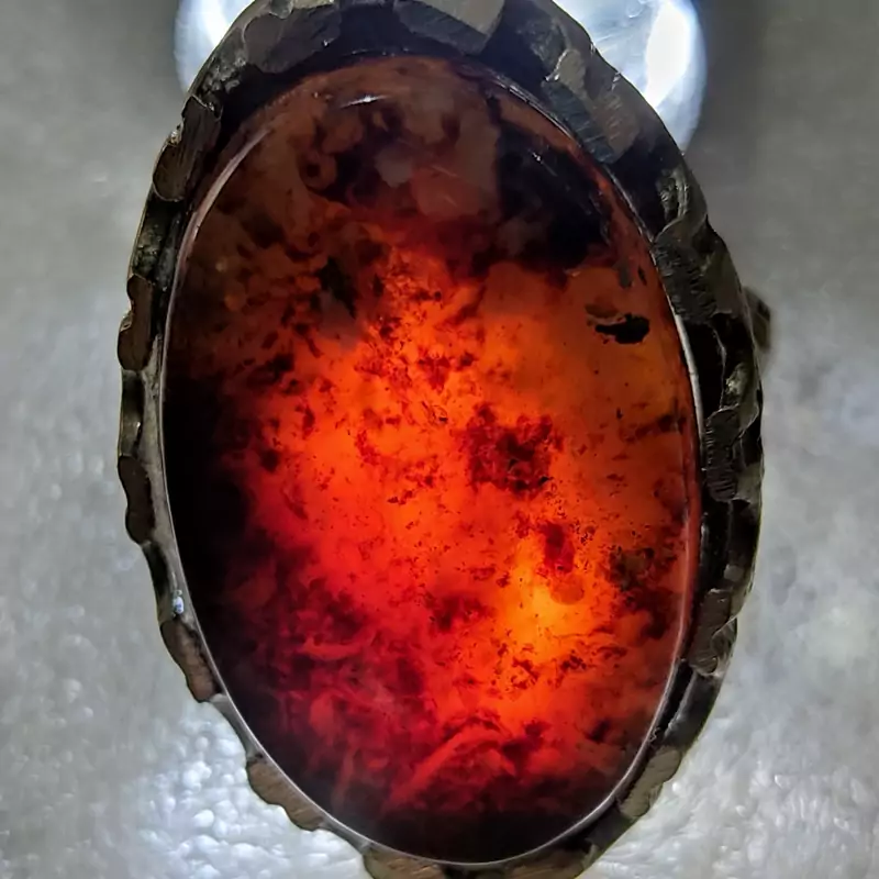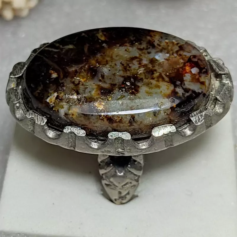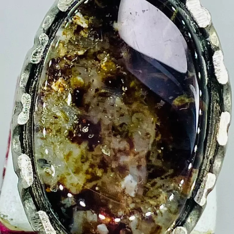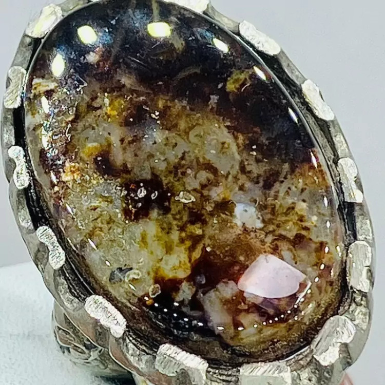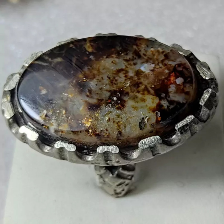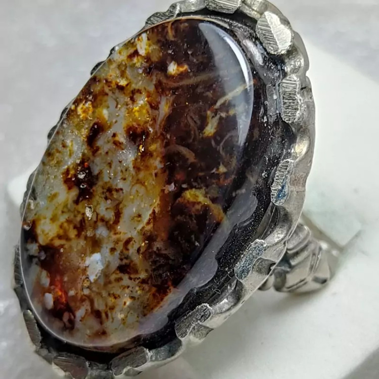 انگشتر نگین درشت عقیق سلطانی چند رنگ خاص با رکاب صفوی مهردار