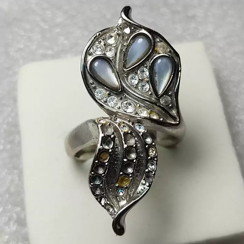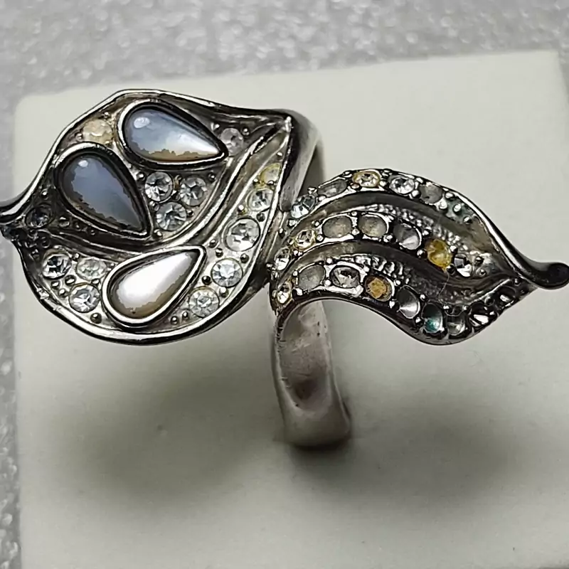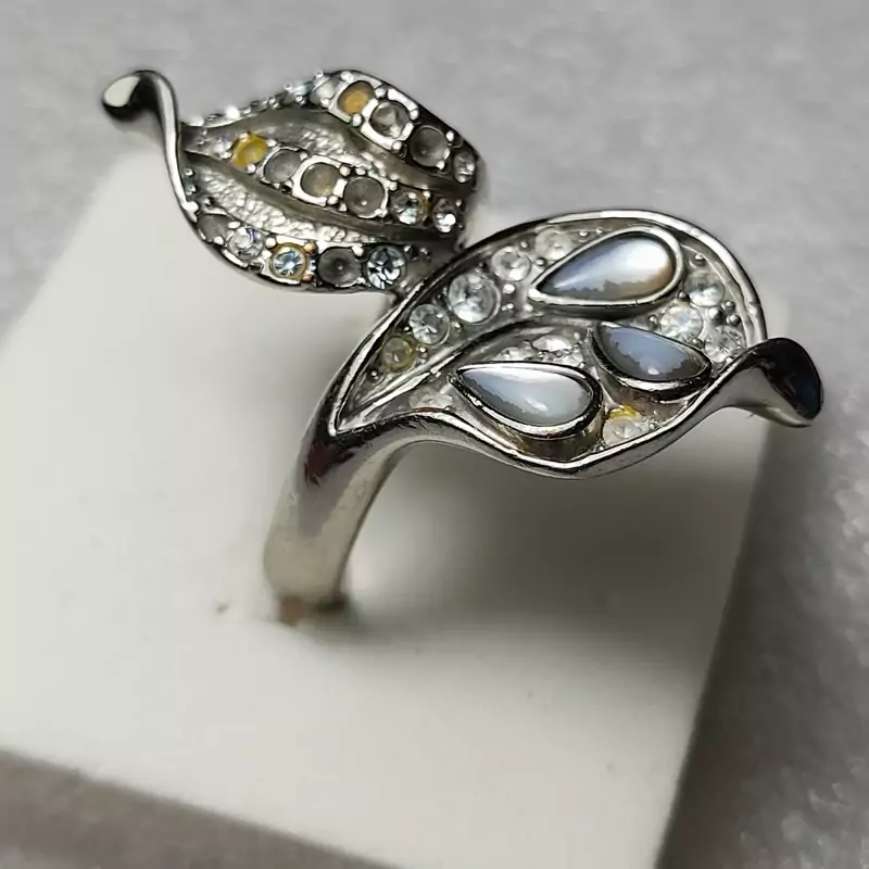 انگشتر زنانه طرح برگ نگین دار رنگ ثابت دائم ضدحساسیت