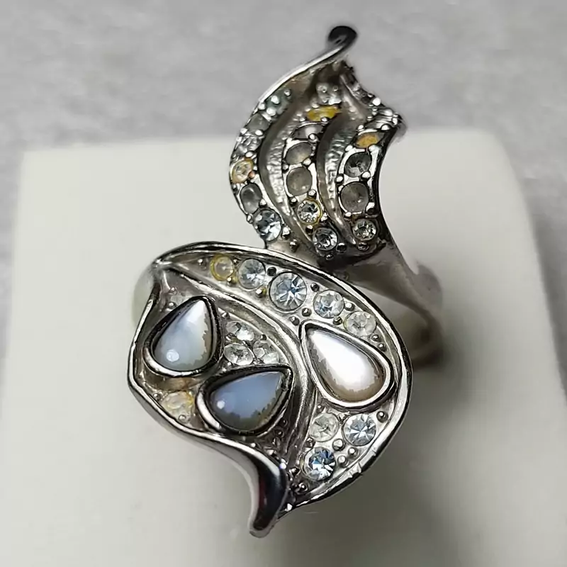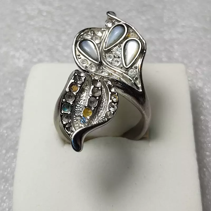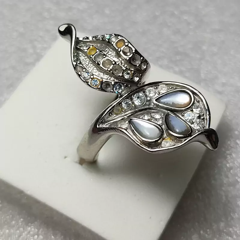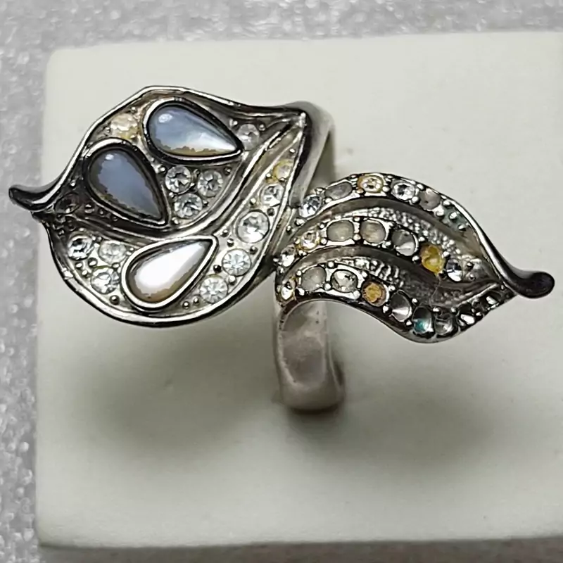 انگشتر زنانه طرح برگ نگین دار رنگ ثابت دائم ضدحساسیت