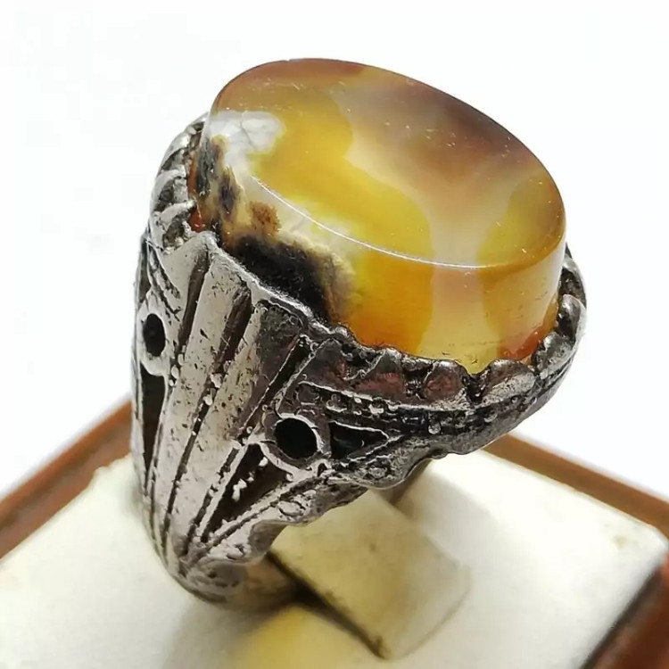 انگشتر ترکیبی عقیق هاله دار و شجر فانتوم کهربایی قدیمی اصیل