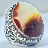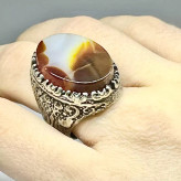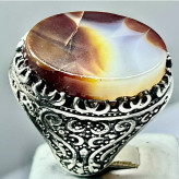 انگشتر مردانه عقیق کارنلیان تکرار نشدنی لامه رکاب تبریزی نقره عیار متوسط آلیاژ 740 با وزن کلی 16 گرم.. زیبا و بینظیر
