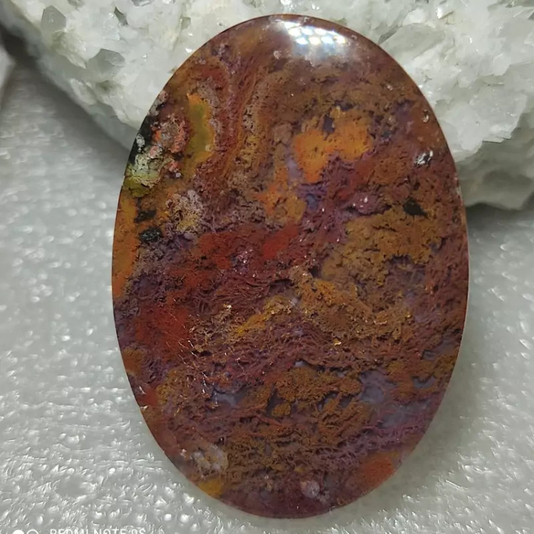 نگین درشت آویزی عقیق شجر پاییزی سه قلعه با طرح دو طرفه و ترکیب رنگ و نقش عالی و بینظیر کاملا معدنی و طبیعی و بکر با تراش دست ابعاد 36 در 25 و وزن 10.06 گرم مناسب آویز و جواهرات