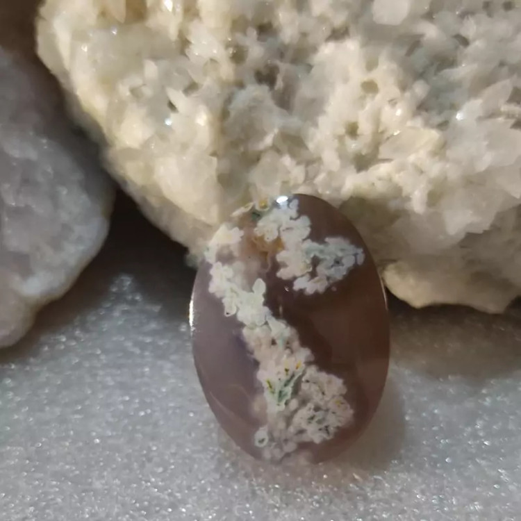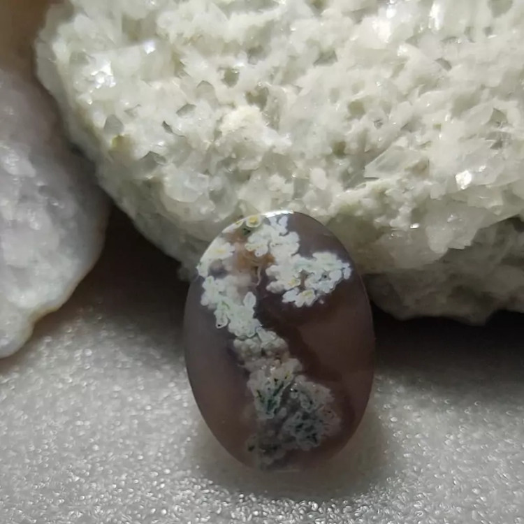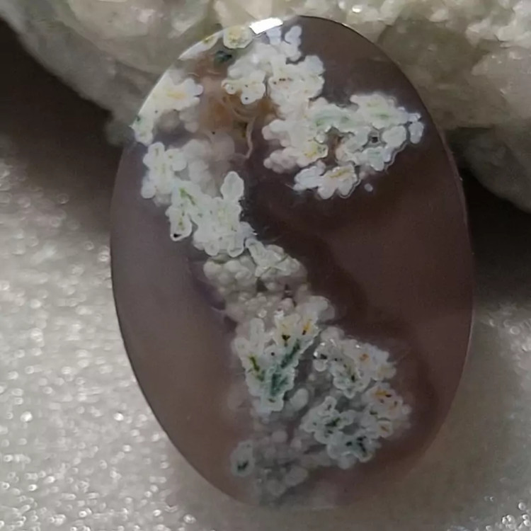 نگین زیبای عقیق شجر شکوفه بهاری در زمینه شفاف و شیشه ای لانه زنبوری رنگ سوسنی کاملا طبیعی و معدنی و با تراش دست مناسب انگشتر و آویز و جواهرات در ابعاد 24 در 17 میل و وزن 5.62 گرم .....زیبا و بینظیر