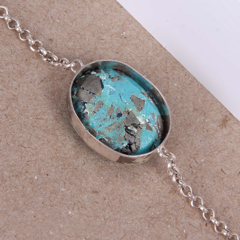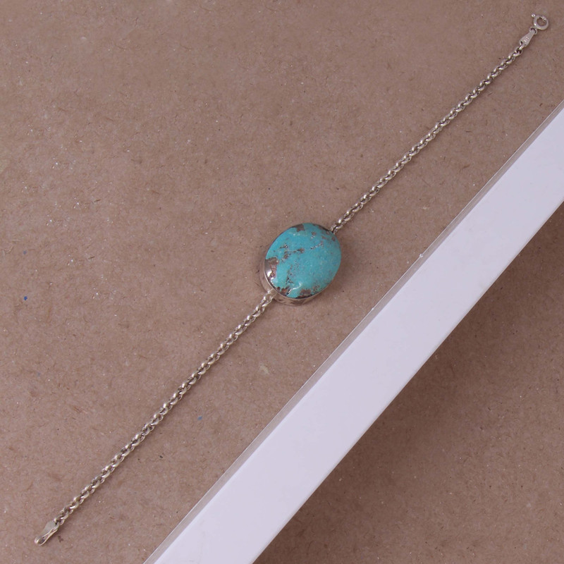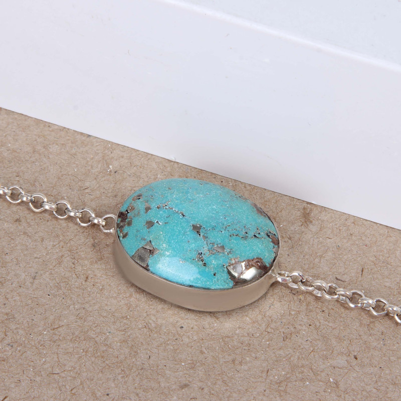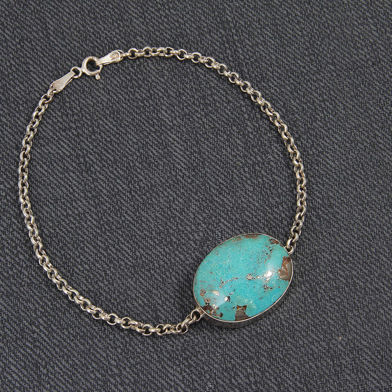 دستبند نقره بازرگانی میلادی مدل سنگ فیروزه کد DP_461