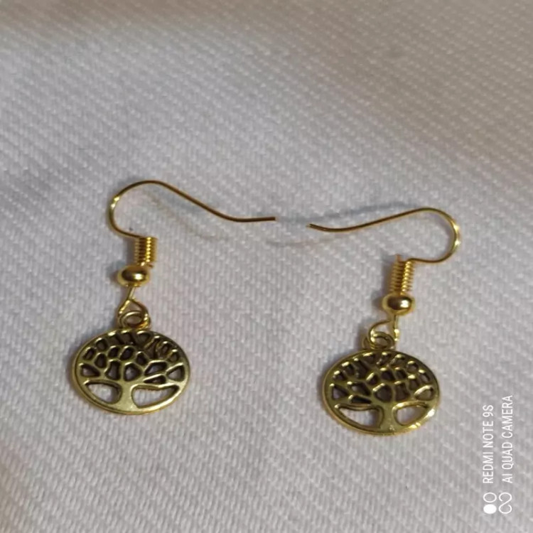 گوشواره بدلی طرح درخت زندگی با آبکاری طلایی زنانه و دخترانه