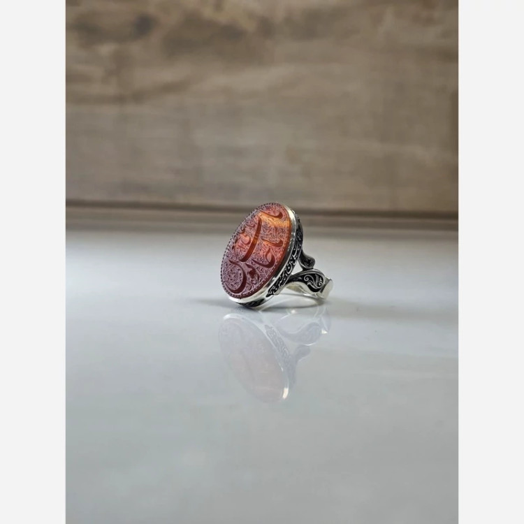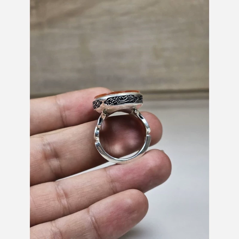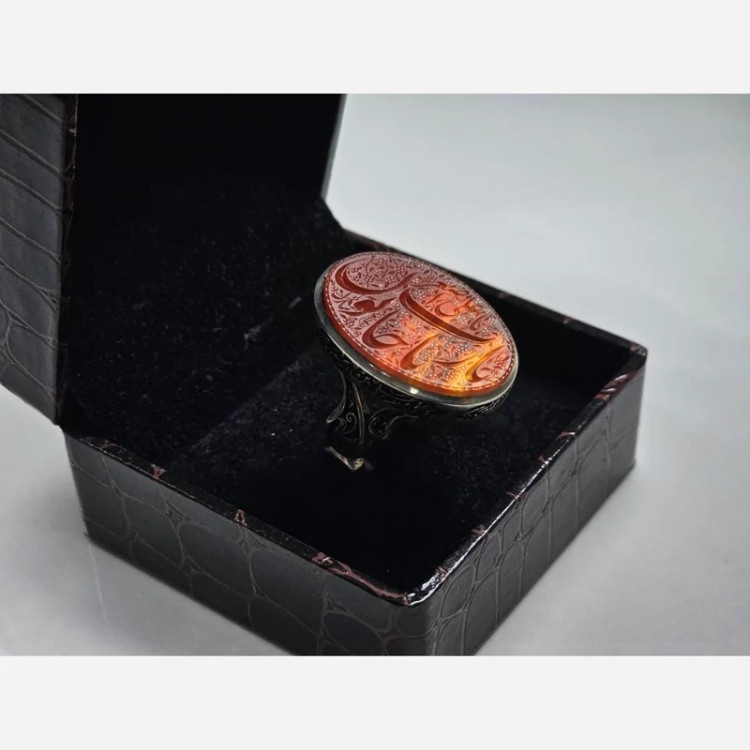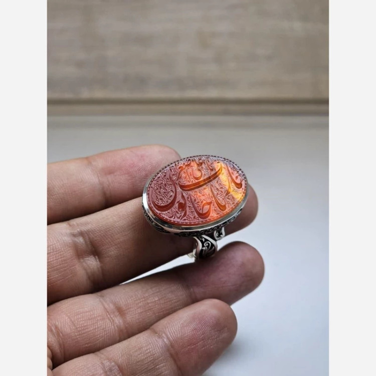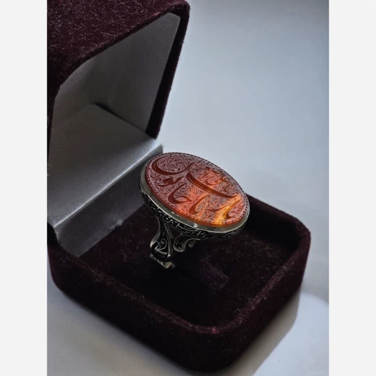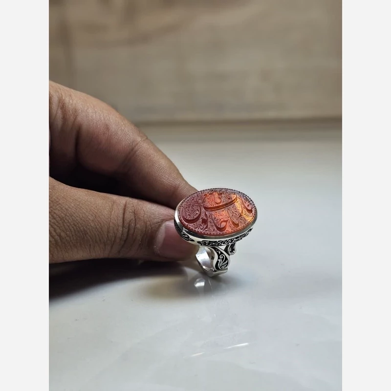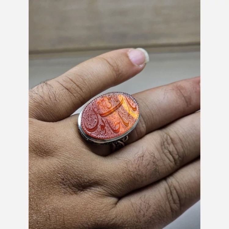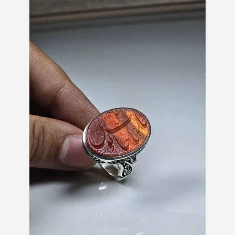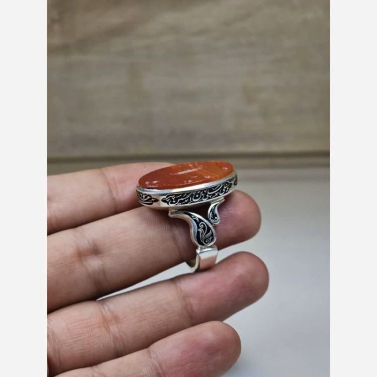 انگشتر مردانه نگین عقیق خاص پرتقالی خط استاد تبارک