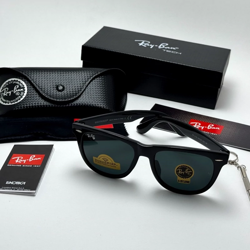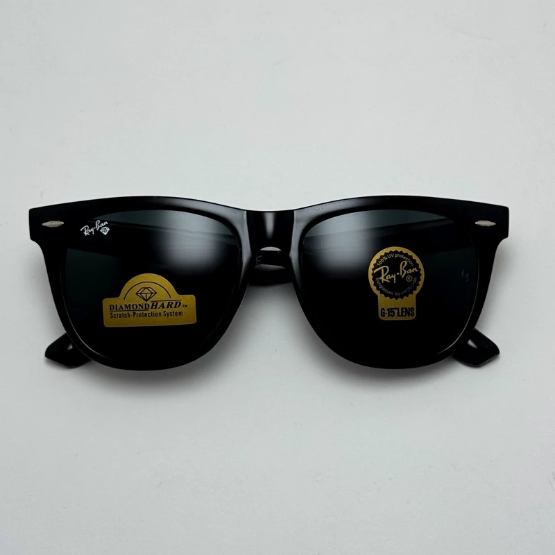 عینک آفتابی ریبن ویفرر شیشه سنگ مشکی براق به همراه پک کامل ریبن Rayban WAYFARER RB 2140 سایز 54