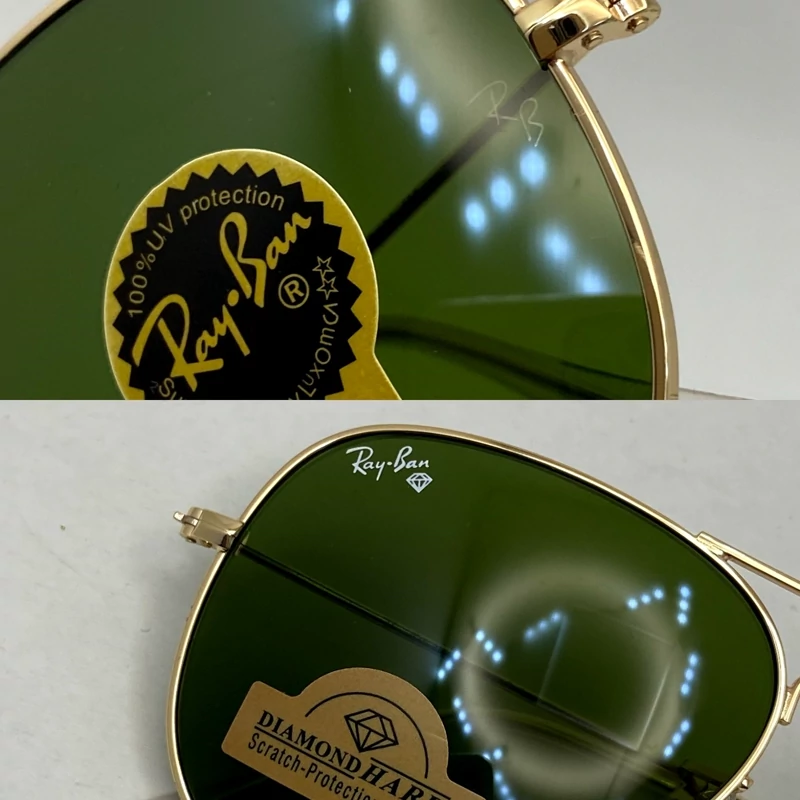 عینک آفتابی خلبانی AVIATOR ریبن reyban شیشه سنگ آمریکایی آنتی رفلکس طلایی سبز سایز 3026 فول پک اورجینال