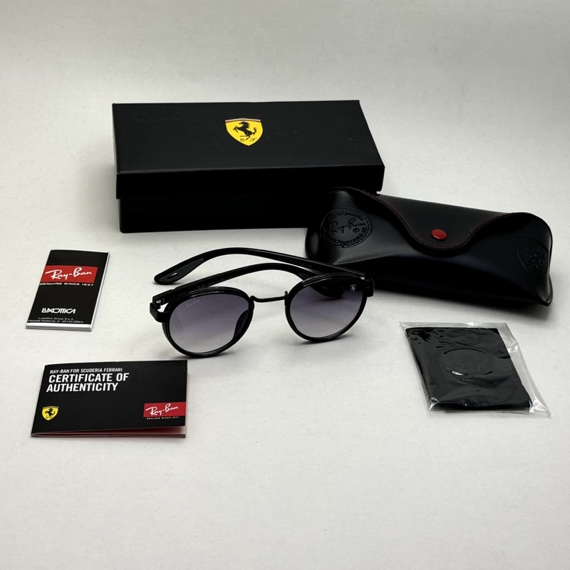 عینک آفتابی گرد ریبن فراری مشکی با پک کاملRayban Ferrari RB3705