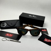 عینک آفتابی ریبن ویفرری پلنگی عدسی مشکی REYBAN WAYFARER سایز 50 با پک کامل