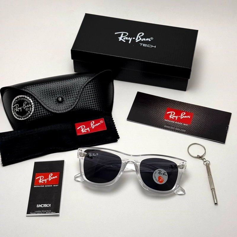 عینک آفتابی ریبن ویفرر ریورس پلاریزه کریستالی عدسی مشکی به همراه پک کامل ریبن Rayban WAYFARER REVERSE RB R0502S