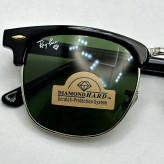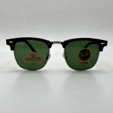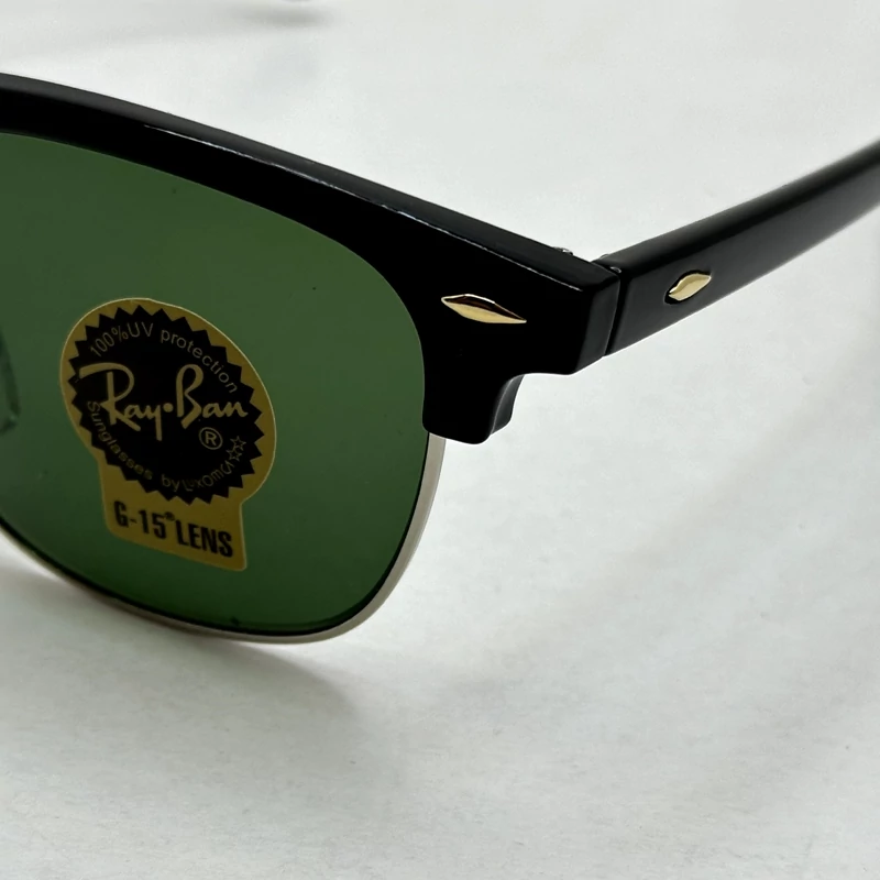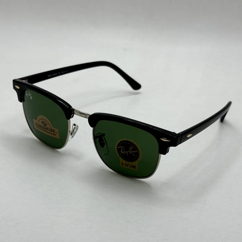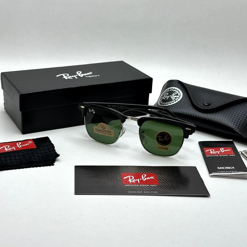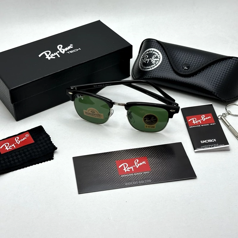 عینک آفتابی کلاب مستر ریبن reyban شیشه سنگ آنتی رفلکس سبز فریم نقره ای به همراه پک کامل اورجینال RB 3016