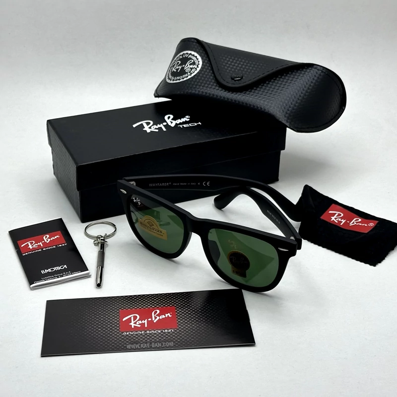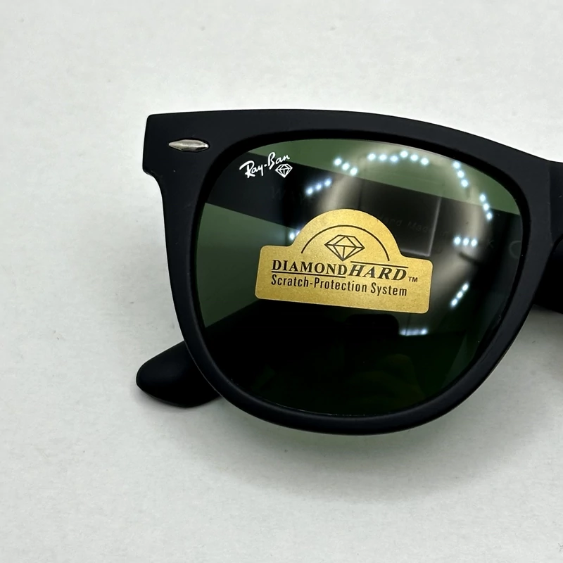 عینک آفتابی خلبانی ریبن reyban شیشه سنگ مشکی مات عدسی سبز سایز 54 به همراه پک کامل اورجینال RB 2140