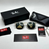 عینک آفتابی کلاب مستر ریبن reyban شیشه سنگ مشکی فریم شفاف به همراه پک کامل اورجینال RB 3016