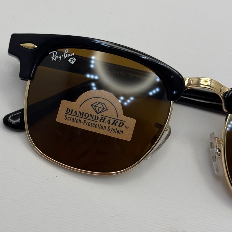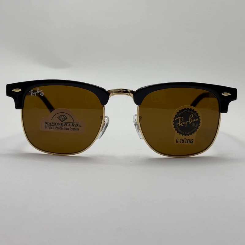 عینک آفتابی ریبن rayban کلاب مستر شیشه سنگ قهوه ای فریم طلایی rb 3016 به همراه پک کامل