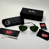 عینک ریبن خلبانی شیشه سنگ فریم نوک مدادی عدسی سبز آمریکایی آنتی رفلکس REYBAN AVIATOR RB 3025 با پک کامل