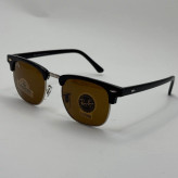 عینک آفتابی ریبن rayban کلاب مستر شیشه سنگ قهوه ای فریم نقره ای rb 3016 به همراه پک کامل