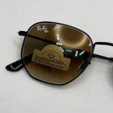 عینک ریبن هگزونال شیشه سنگ فریم مشکی عدسی قهوه ای هایلایت آنتی رفلکس به همراه پک کامل ریبن کد Rayban RB 3548