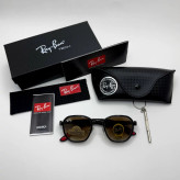 عینک ریبن شیشه سنگ قهوه ای هایلایت فریم نوک مدادی آنتی رفلکس به همراه پک کامل ریبن و آچار کد RB 3674