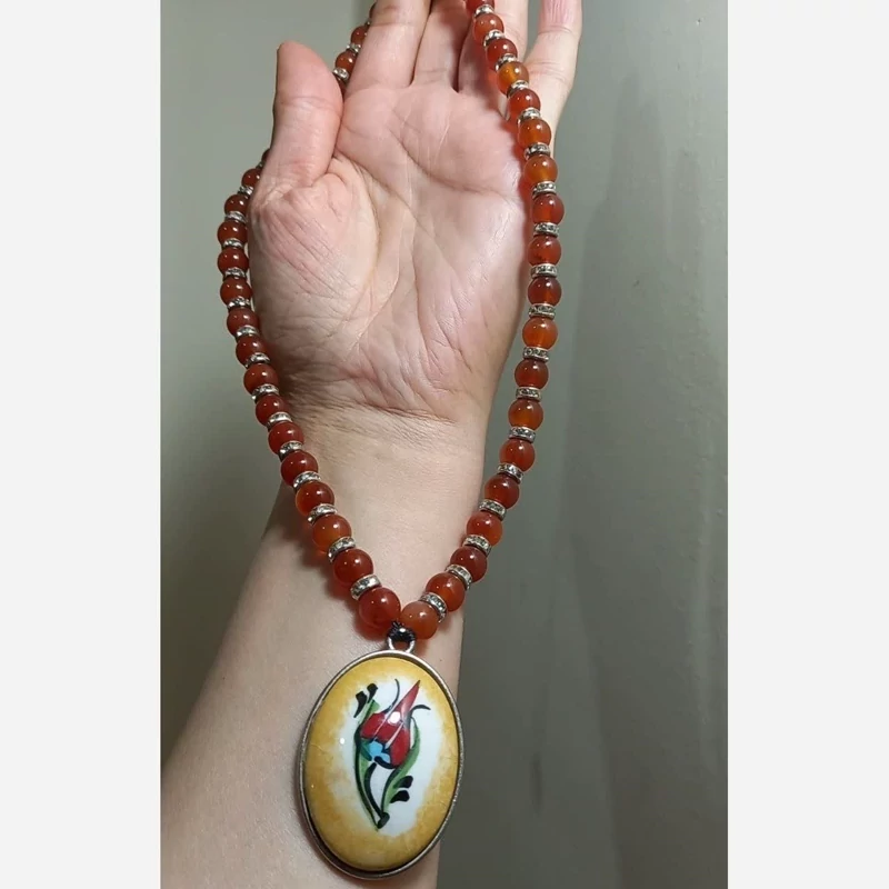 گردبند سنگ عقیق سرخ معدنی و طبیعی