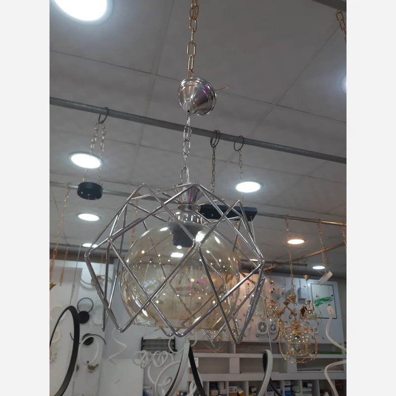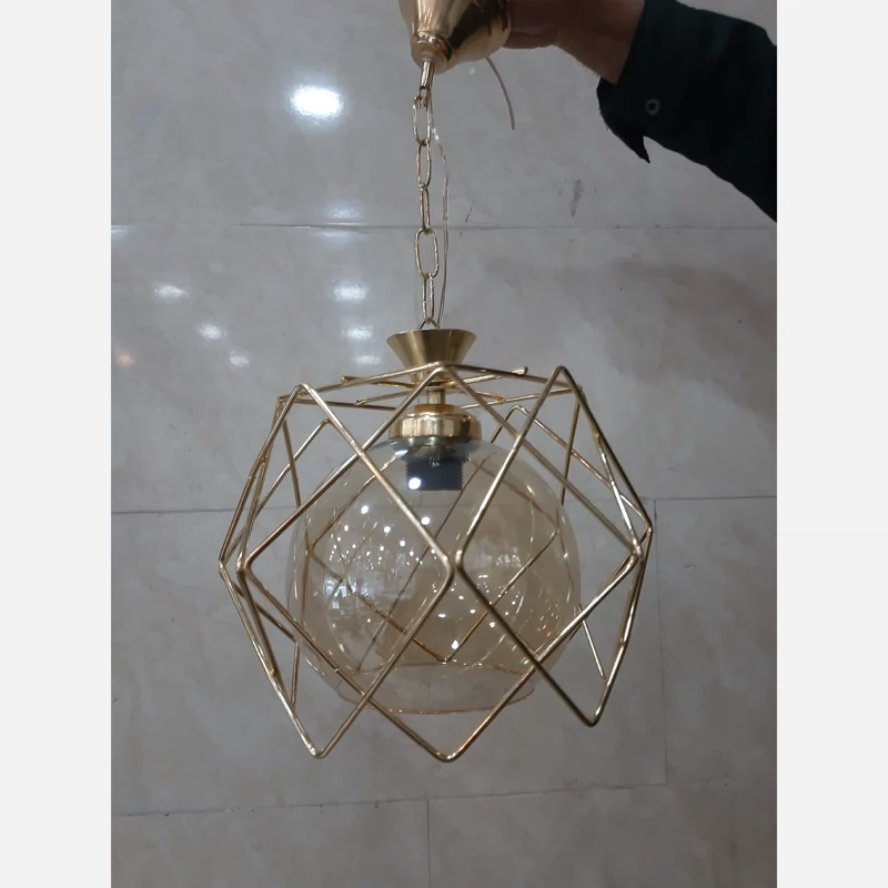 لوستر آویز تک شعله الماس طرح طلا و نقره