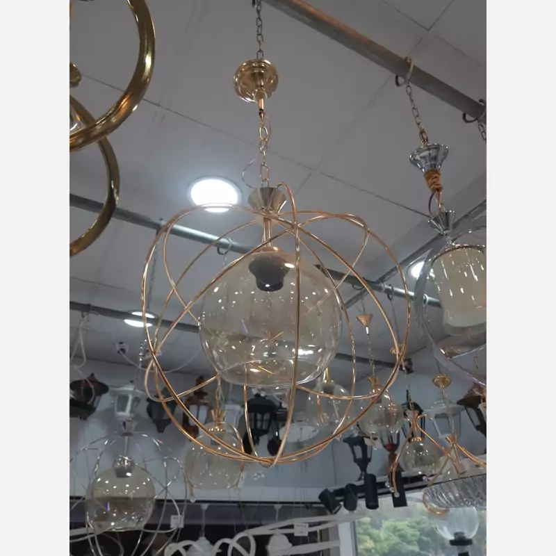 لوستر آویز تک شعله مدل آرام بزگ طرح طلایی و نقره