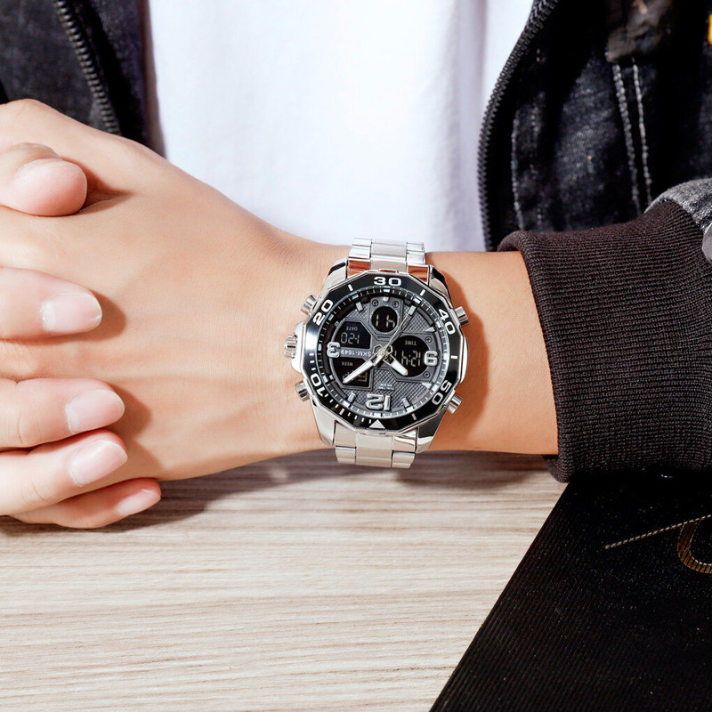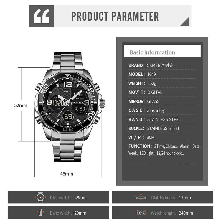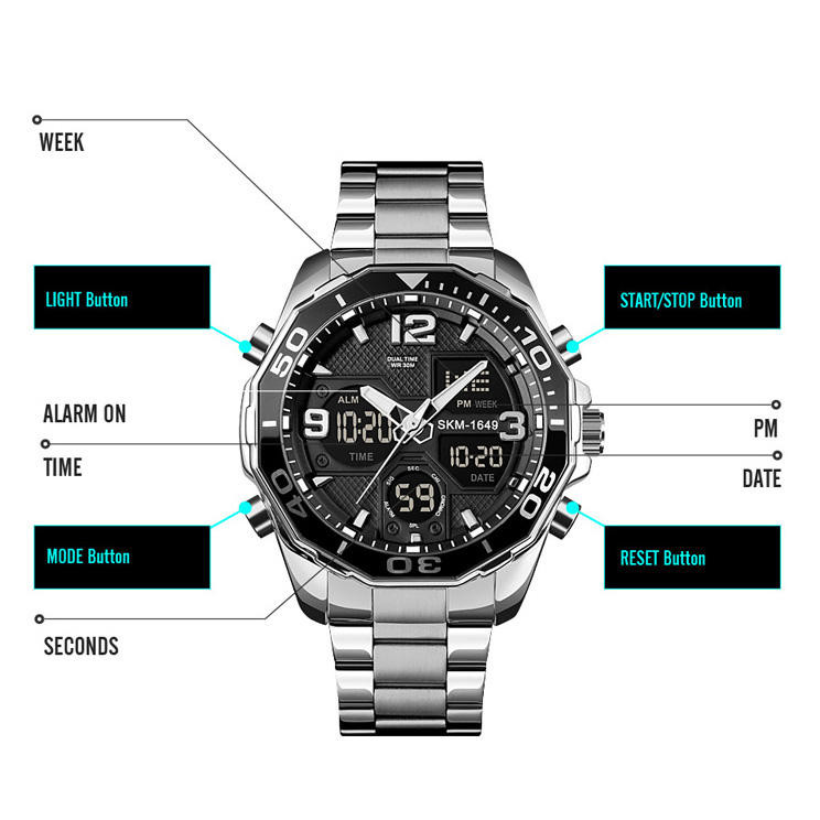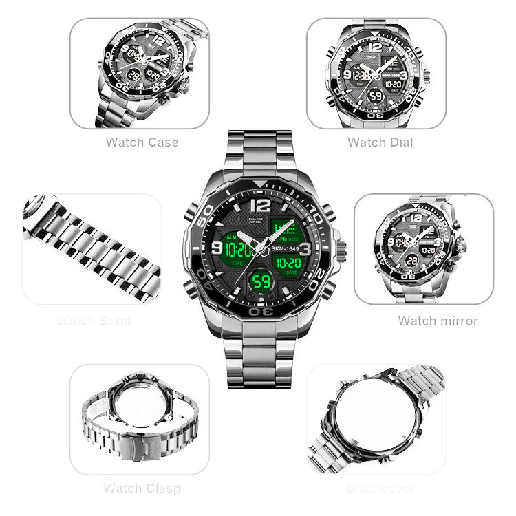 نمایش 24 ساعته , نمایش ساعت دوم , تاریخ شمار , نور پس زمینه , تایمر , آلارم
