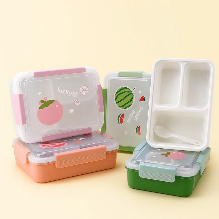 🍱 ظرف غذای کودک و دانشآموز چندخانه، انتخابی عالی برای مدرسه، مهدکودک یا سفر است. این لانچ باکس با طراحی میوهای بامزه و رنگهای شاد، هم جذابیت دارد و هم کاملاً کاربردی است.