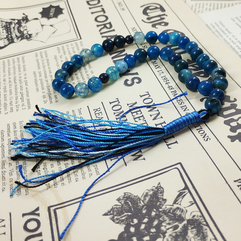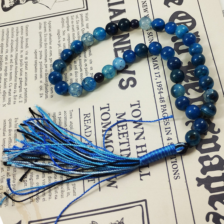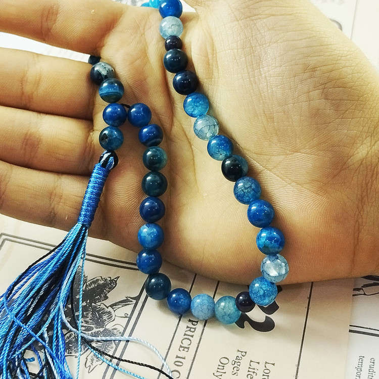 تسبیح سلین کالا مدل عقیق ماداگاسکار آبی 33 دانه اصل 8 میل cod-56