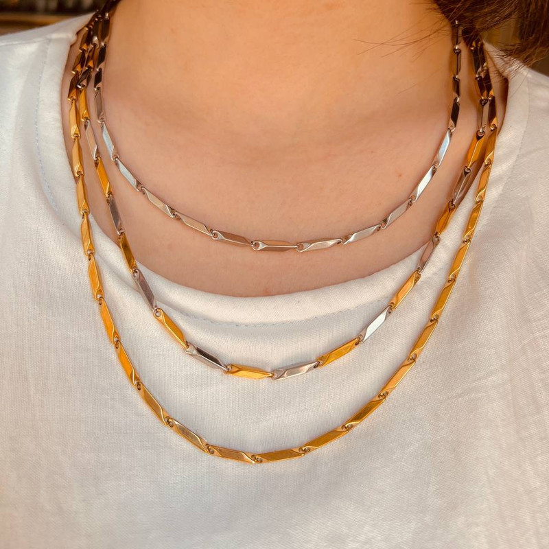 این زنجیر دارای 3 رنگ طلایی و نقره ای و دورنگ میباشد