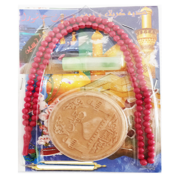 سوغات کربلا شامل تسبیح زیارت عاشورا عطر حرم مهر 7 سانتی