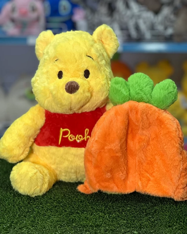 طراحی جذاب: طراحی وینی پو با کلاه هویجی، این عروسک را بسیار جذاب و دوستداشتنی کرده است.