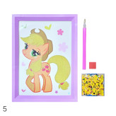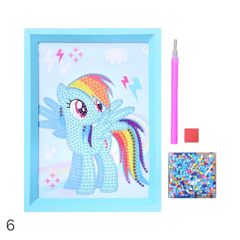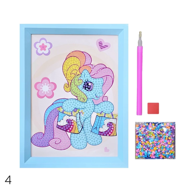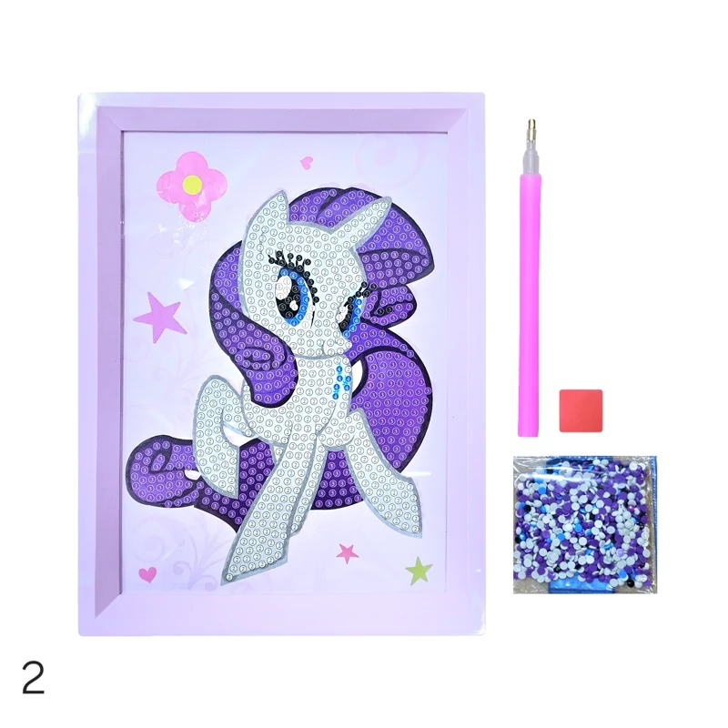 طرح پونیها (My Little Pony) همواره یکی از طرحهای پرطرفدار میان کودکان، مخصوصاً دختر بچهها است. رنگهای شاد، شخصیتهای بانمک و فضای دوستانه این طرح، احساس شادی، الهام و دوستی را به کودک منتقل میکند. این ترکیب باعث میشود کودک با شوق بیشتری تا پایان کار ادامه دهد و اثر نهایی را به عنوان یک تابلوی دکوراتیو یا هدیه نگهداری کند.