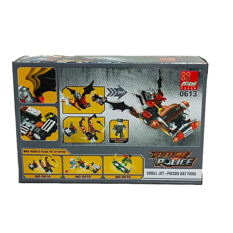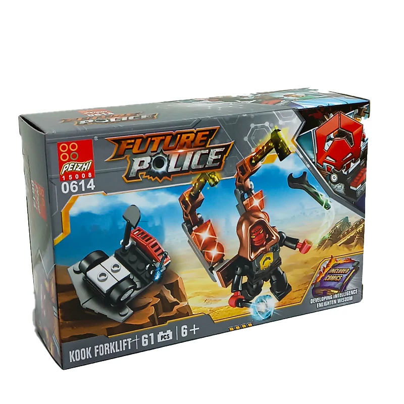 تعداد قطعات: هر مدل از این مجموعه شامل تعداد زیادی قطعه است که به کودکان اجازه میدهد تا با دقت و تمرکز بالا، ماشینهای خود را بسازند. به عنوان مثال، مدل لگو جنگی Future Police آیتم 0624 شامل 104 قطعه است که به کودکان کمک میکند تا مهارتهای ساخت و ساز خود را تقویت کنند.