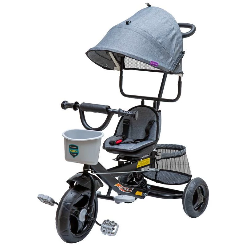 این سه چرخه دارای پدالهای روان است که به کودک کمک میکند به راحتی و بدون نیاز به تلاش زیاد، سه چرخه را به حرکت درآورد. همچنین، سایهبان موجود در این مدل، کودک را از تابش مستقیم آفتاب در روزهای گرم تابستان محافظت میکند. سبد جلو و عقب نیز فضای مناسبی برای قرار دادن اسباببازیها و وسایل کودک فراهم میکند.