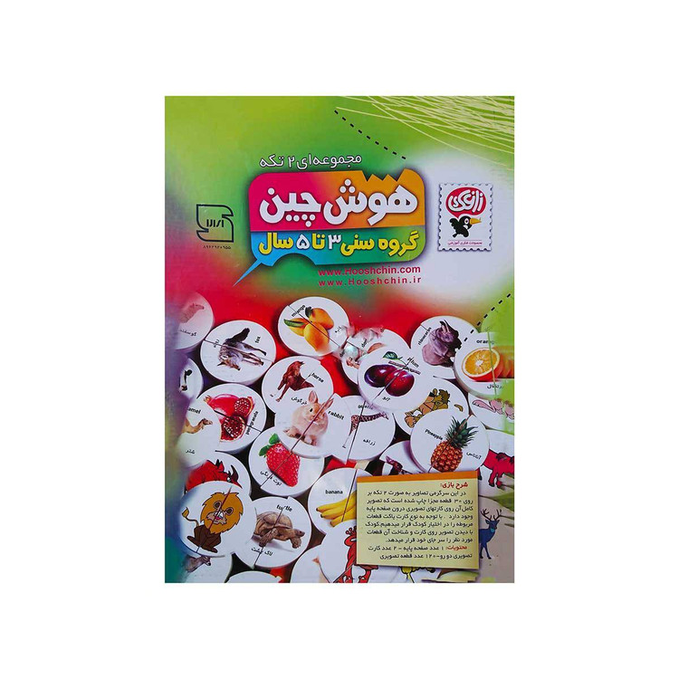 بازی فکری دو تکه ای هوش چین:این بازی دارای دو صفحه شامل طرح حیوانات و میوه می باشد که بچه ها باید تصاویر را از بین کارت های چاپ شده تشخیص دهند و سرجایش قرار دهند. این کارت ها دو تکه هستند که پیدا کردن تصاویر را پیچیده تر می کند و باعث تقویت هوش و حافظه کودکان می شود و همچنین برای افزایش تمرکز و دقت آن ها مناسب می باشد.با این بازی کودکان با انواع حیوانات و میوه ها و اسامی مختلفشان نیز آشنا می شوند که یک انتخاب عالی برای کودکان 3تا 5سال است و باعث رشد و پیشرفت ذهنی آن ها می شود.این محصول در دسته بندی آموزشی فروشگاه اینترنتی فانتزی تویز به شما عزیزان ارائه میشود .