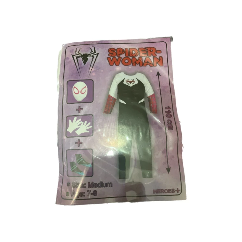 جزئیات محتویات بسته لباس دختر عنکبوتی (در دو سایز ۹۰ و ۱۰۰ سانتیمتر)