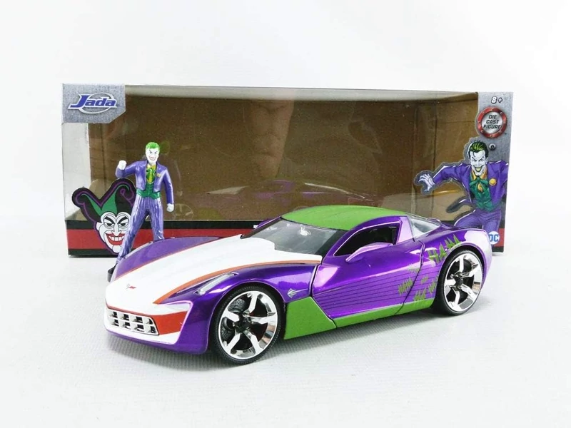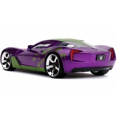 ماکت فلزی Chevy Corvette Stingray 2009 طرح جوکر با جزئیات دقیق و رنگآمیزی خاص، محصول Jada در مقیاس 1:24.