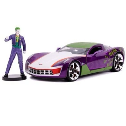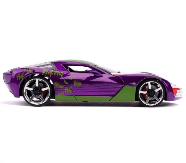 ماکت فلزی Chevy Corvette Stingray 2009 طرح جوکر با جزئیات دقیق و رنگآمیزی خاص، محصول Jada در مقیاس 1:24.