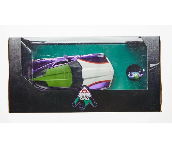 این مدل در یک جعبه زیبا و کلکسیونی عرضه میشود که تصاویر خودرو و طرح جوکر روی آن چاپ شده است. بستهبندی نه تنها محصول را از ضربه و گردوغبار محافظت میکند، بلکه آن را آماده هدیه دادن نیز کرده است.