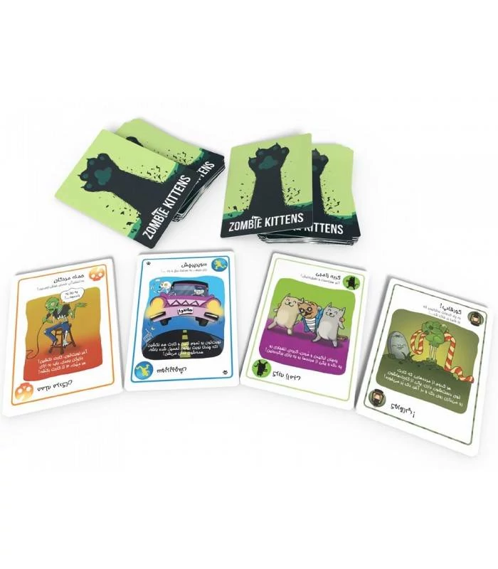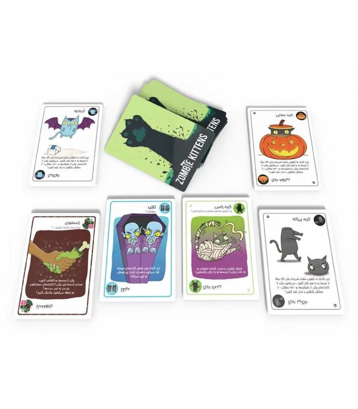 سپس تمام کارت ها را بر مي زنيد و به هر بازيکن هفت کارت به اضافه يک کارت گربه زامبي مي دهيد.
