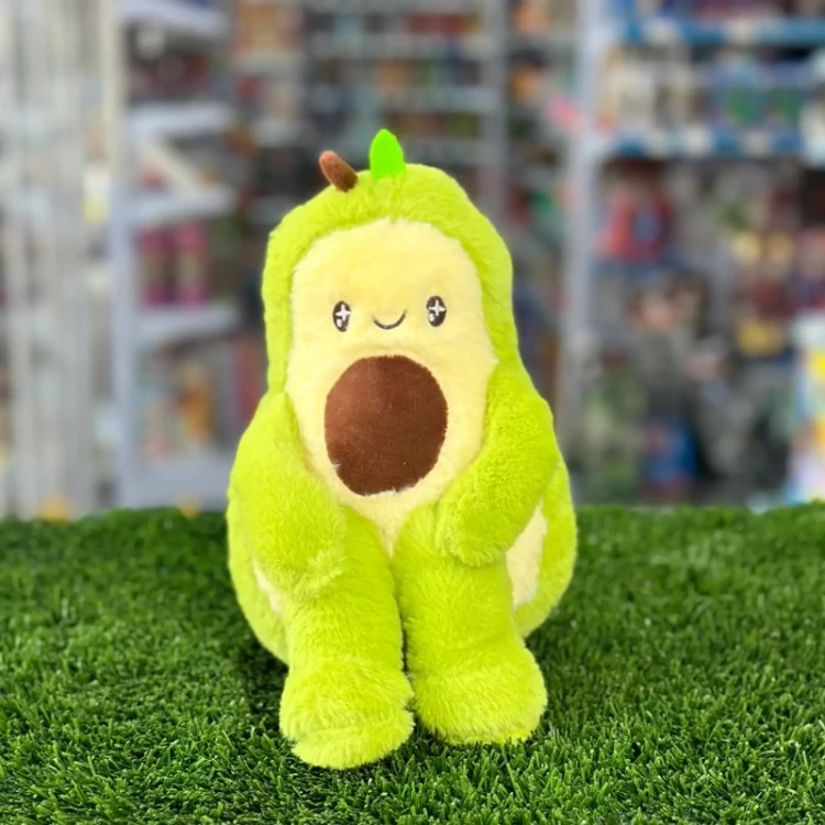 طراحی منحصر به فرد: این عروسک به شکل یک آووکادوی بامزه طراحی شده که به حالت زانو به بغل نشسته است. چهرهای خندان و چشمانی دوستداشتنی، به آن ظاهری بسیار دلنشین داده است.
