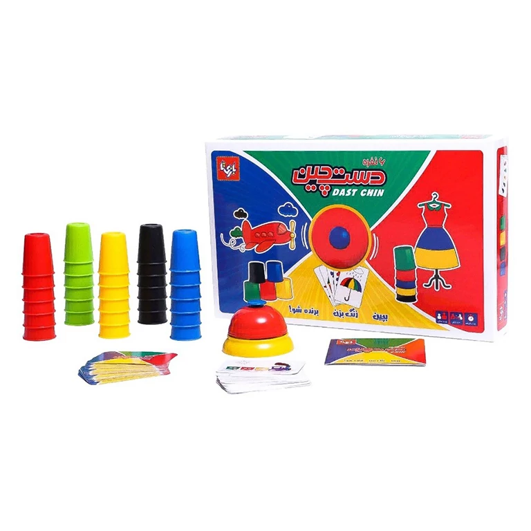 محتویات بسته: 30 عدد لیوان رنگی (6 سری در 5 رنگ مختلف)، 48 عدد کارت بازی، و یک زنگ
