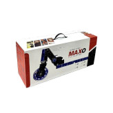 اسکوتر فلزی دو چرخ مکسو با بدنه فلزی ضدزنگ و روکش پلاستیکی طوری طراحی شده است که تحمل وزن تا 100 کیلوگرم را دارد. چرخهای اسکوتر مکسو مقاوم و ژلهای است. این اسکوتر دارای کمک فنر است که در زمان استفاده از آن در محیطهای ناهموار، چرخهای آن آسیب نبیند. در طراحی اسکوتر فلزی مکسو از رنگهای شاد استفاده شده تا جذابیت بیشتری برای مخاطبین خود به ارمغان آورد. دستههای اسکوتر مکسو قابلیت تنظیم به اندازه دلخواه را دارد که فضای کمتری را اشغال کند که سبب حمل آسان آن میشود. بر روی بدنه و صفحه این اسکوتر شخصیتهای محبوب کارتونی همانند مرد عنکبوتی، سگهای نگهبان، فروزن و... حک شده است. این محصول برای کودکان سه تا 6 سال طراحی شده و در طرحهای پسرانه و دخترانه موجود است. اسکوتر مکسو دارای جعبه زیبا بوده که بهترین گزینه برای هدیه به کودکان است. این محصول ایرانی و در مقایسه با نمونههای خارجی، قیمت مناسب و کیفیت بالاتری دارد.